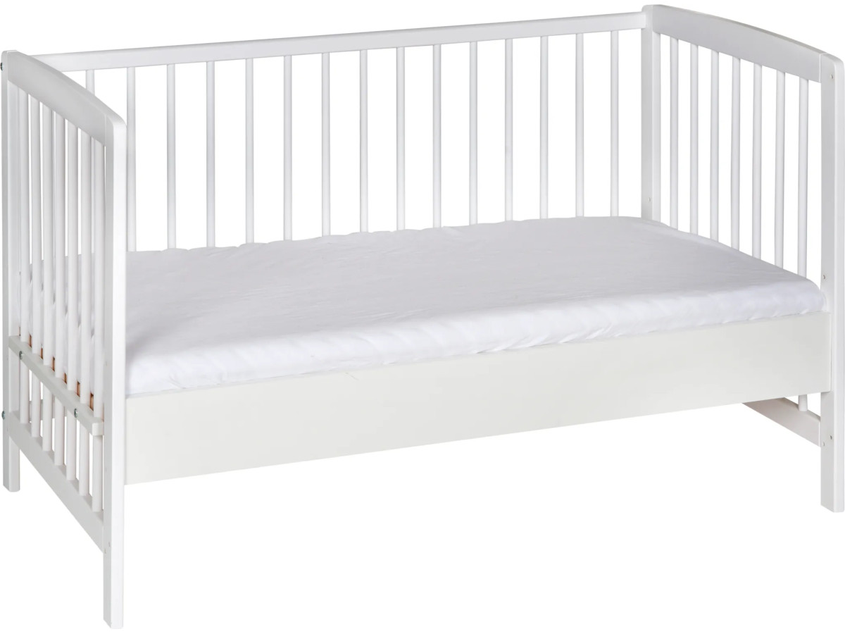 Model wykonany jest z litego drewna bukowego i pokryty białym, bezpiecznym lakierem wodnym, wolnym od szkodliwych substancji. Solidna konstrukcja, staranne wykończenie oraz ponadczasowy design sprawiają, że łóżeczko doskonale pasuje do każdego pokoju dziecięcego.